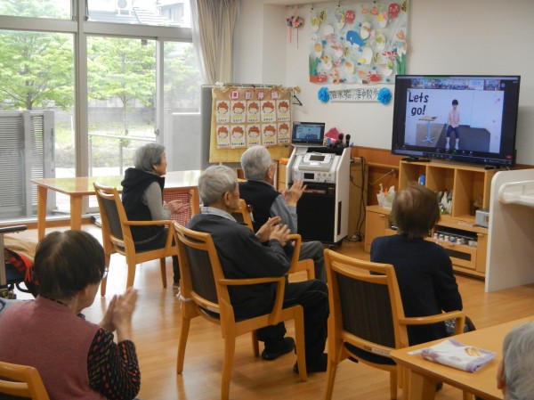 この日も、テレビに映るトレーナーの動きを見ながら、軽快な音楽に合わせて、腕を上げたり足を広げたりと、元気に体操を行っていました。