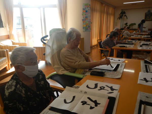 今回は、2階のレクリエーション(書道)の様子をお届けします。