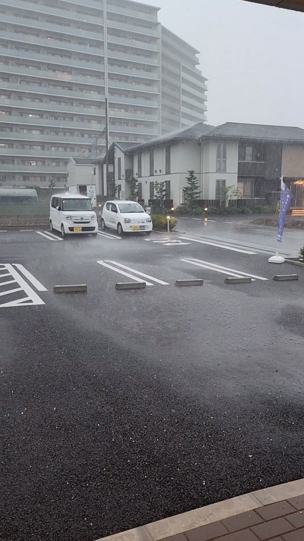 ものすごい量の雨が急に振り出し、ひょうに変わりました。