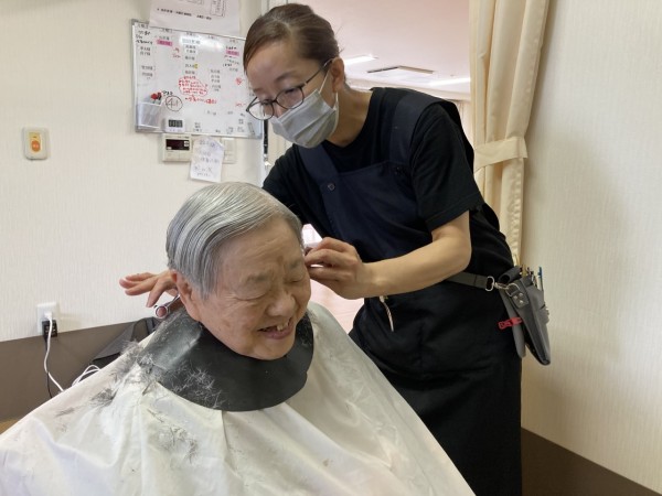 楽しそうにお話しされながら散髪されています♪