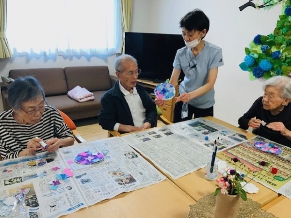 本日は2階の制作レクリエーション(紫陽花を作ろう)活動の様子をアップ致します。(*^_^*)