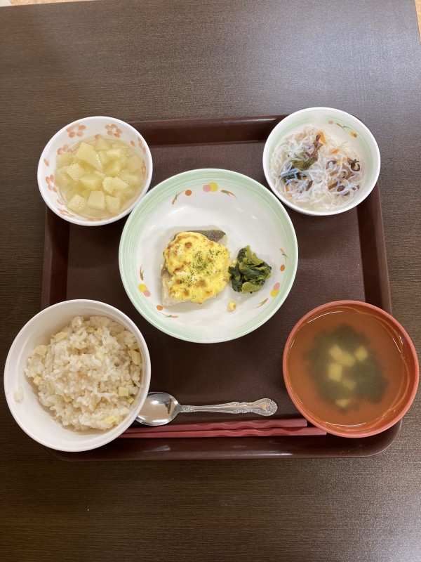 10日(金)の昼食は、たけのこ御飯でした。