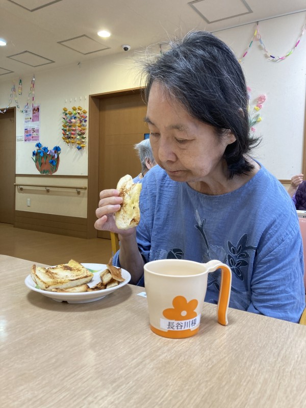 先日のおやつ、あんぱんが大好評だったため本日のおやつもパンを提供しました!