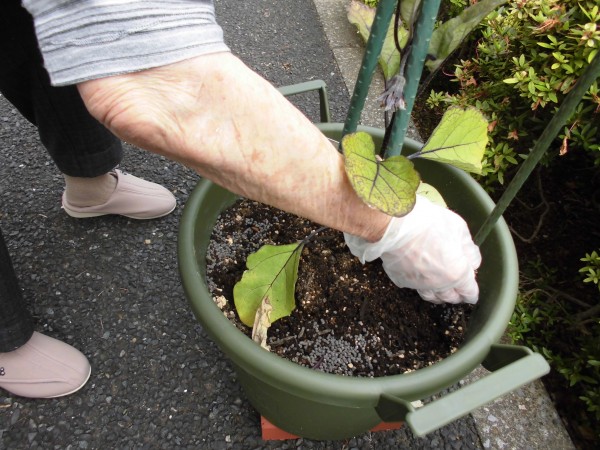 まずは少し土を掘り返し、柔らかくしたところに肥料をあげます。