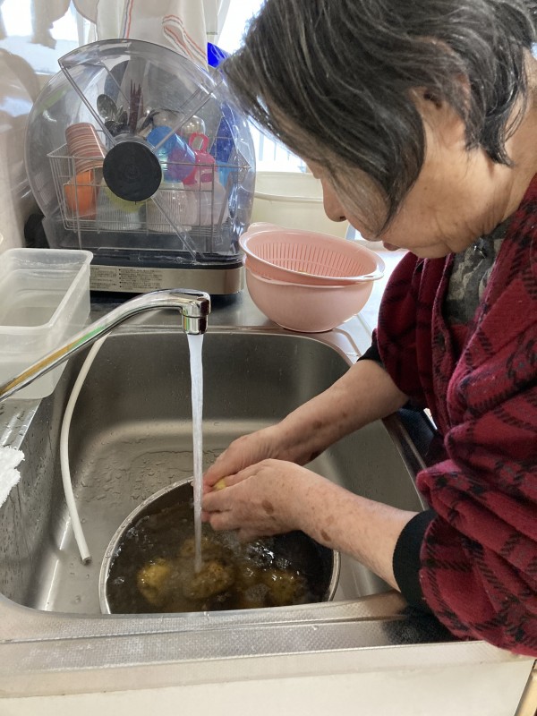 ジャガイモ洗って茹でて