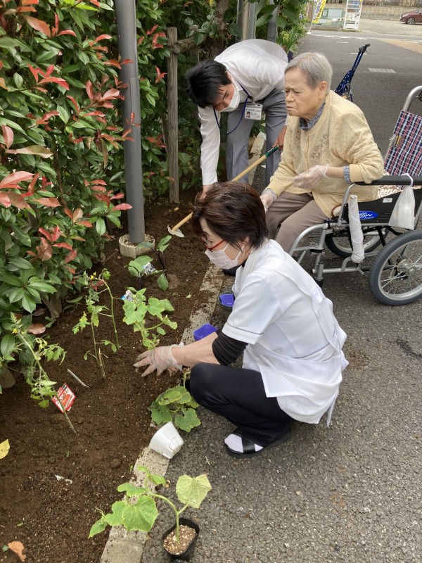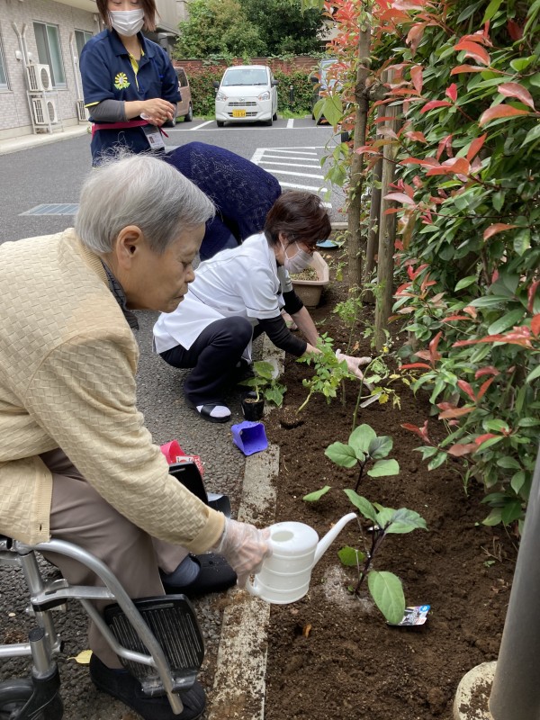 利用者様にも一緒に苗を植えたりお水を上げていただいたりたくさんお手伝いしていただきました(*'ω'*)☆