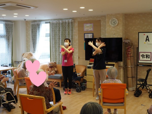 20日は「体操レク」で本部よりインストラクターが来てくださいました。
