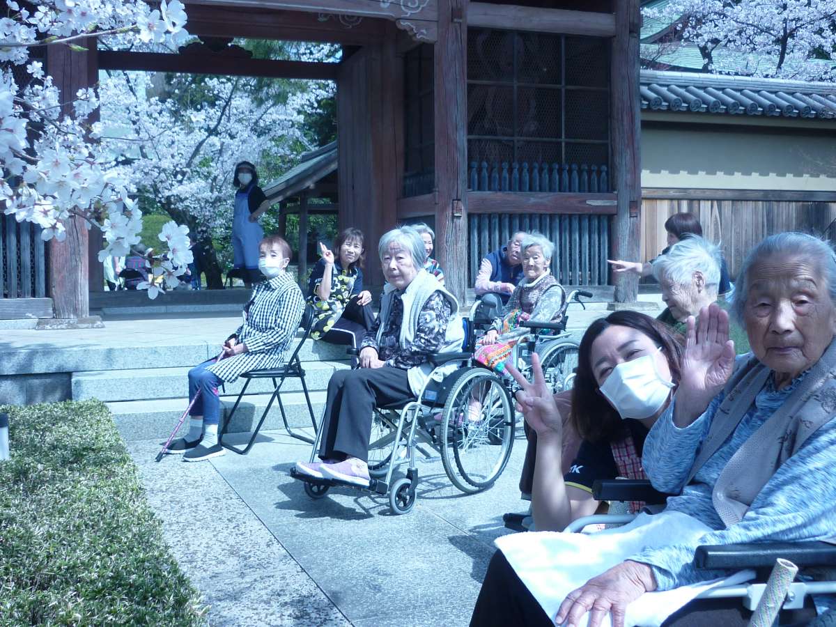 ホーム横の枝垂れ桜の下で、記念撮影したり、お話したり楽しく過ごしました。