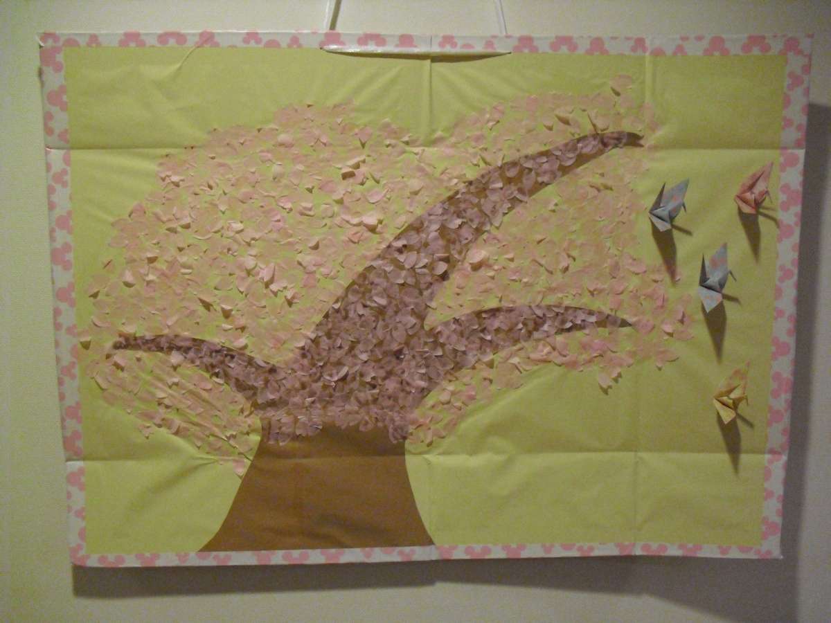 富士山や2018年の犬をモチーフにしたちぎり絵、折り紙で作った満開の桜など…☆彡