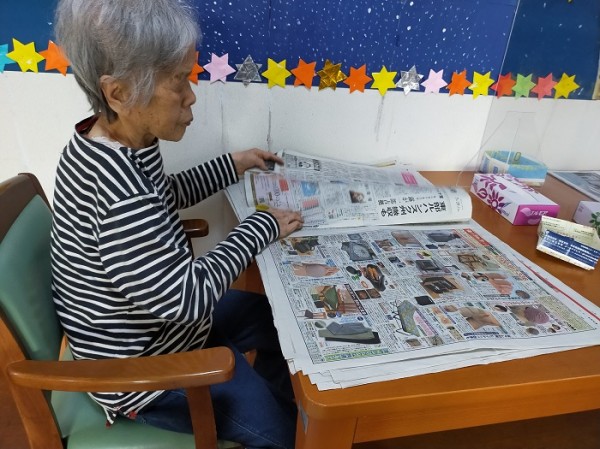 今日は、新聞紙折りのお手伝いを