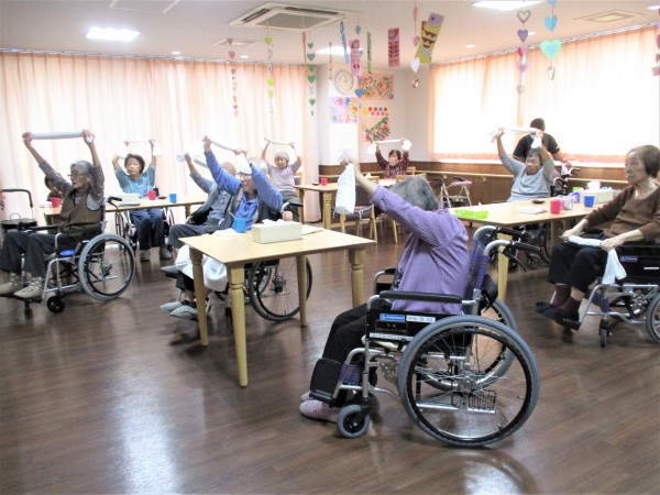 タオル体操教室は三か月連続での開催のため、要領が分かっていて楽しそうでした。