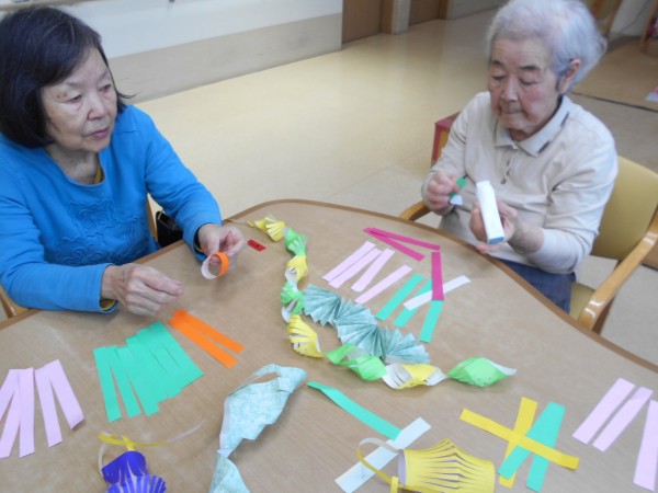 ホームでは七夕飾りを製作中~