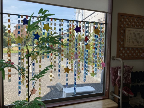 まだまだ梅雨明けしないと思っていたので隙間時間に皆様と少しずつ作っていたのですが、先日の梅雨明けのニュースで慌てて7月の壁画飾りを作りました。