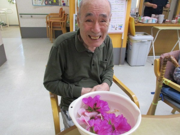 今日は、道端に咲いているお花を使って「花手水」作りを楽しみました。