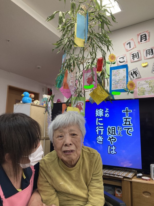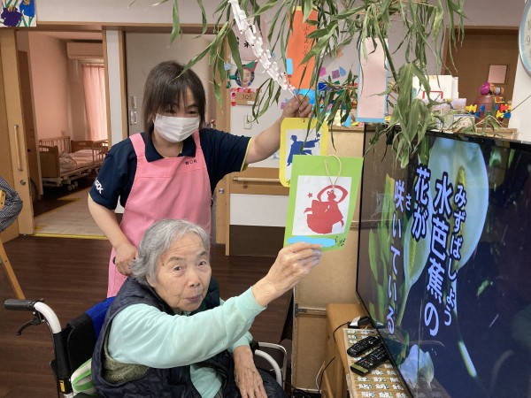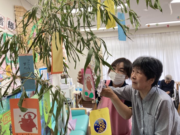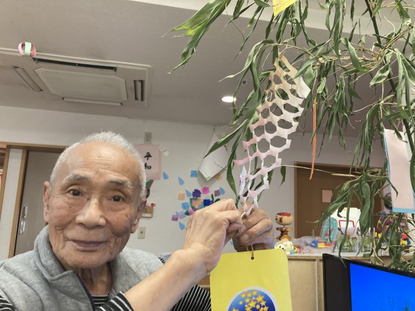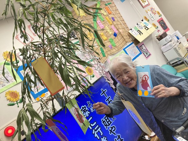 「これ、ひこ星様と、おり姫様???可愛いわね(^^)/」と笑顔で話されるご利用者様。