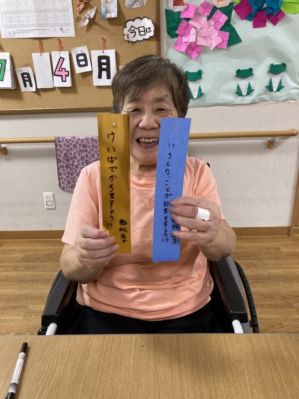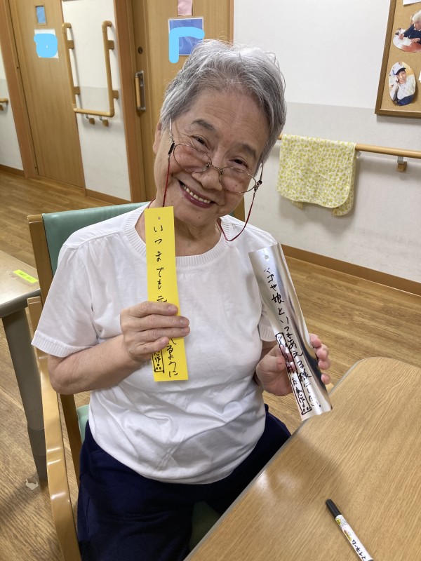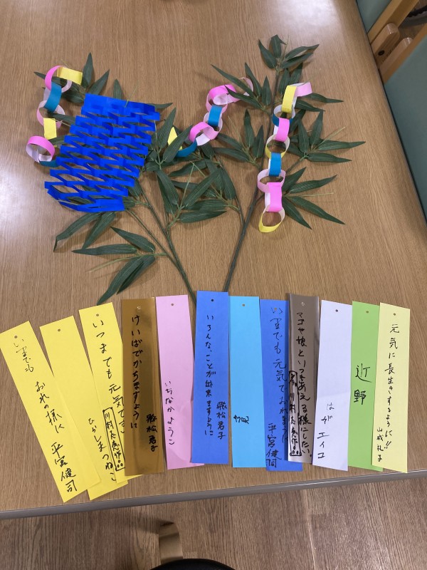 また、七夕に向けて皆さんと短冊にお願い事を書きました(#^.^#)