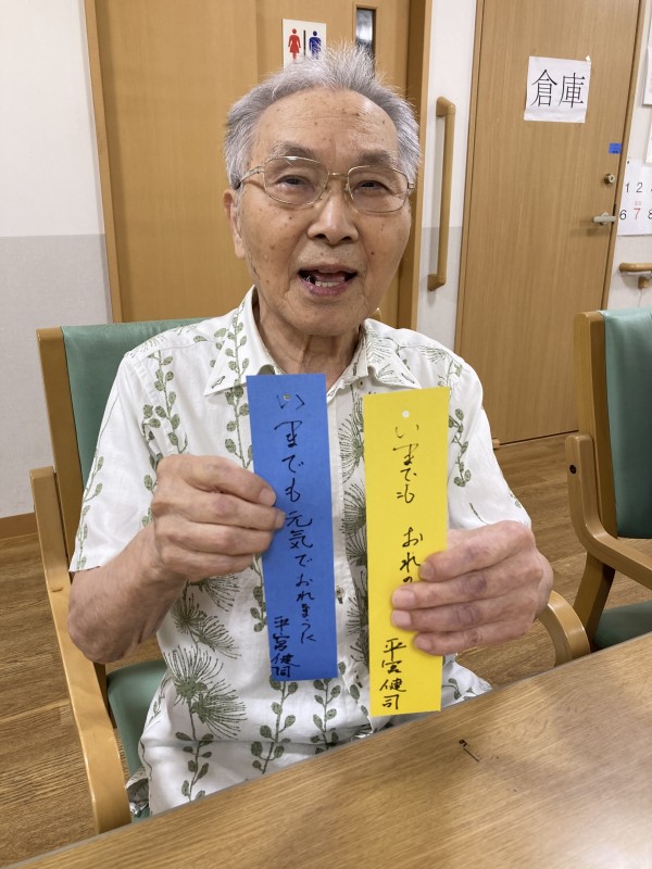 では次は短冊作りです。皆さんに願い事を書いてくださいました。
