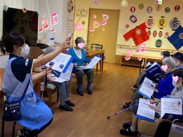 手でリズムをとりながら歌うご利用者様。