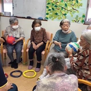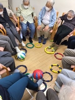 今日は輪っかととボールで楽しい運動をしました♪