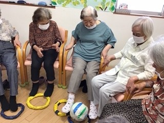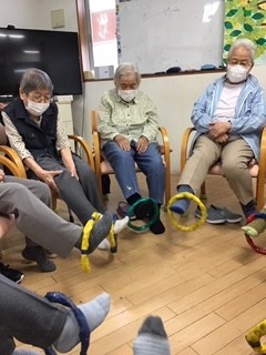 まずは輪っかを足でお隣の方に送ります。