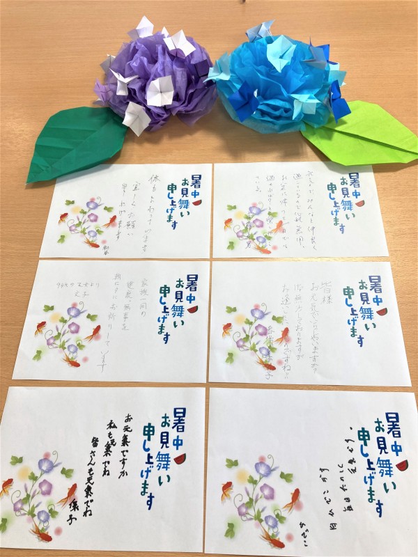 毎年恒例の暑中見舞いを入居者の皆様に書いていただいています。
