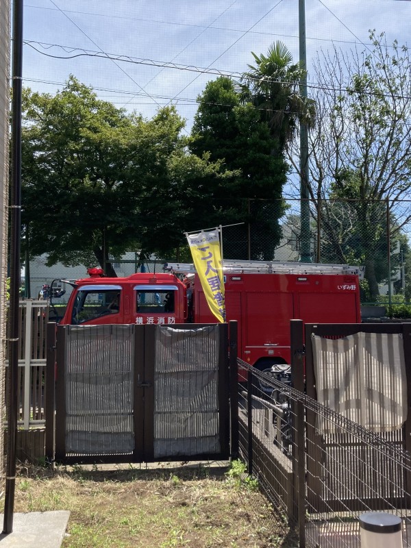 消防車も来ていただき、本格的な訓練となりました!!