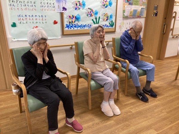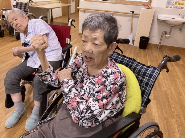 お二人は、車椅子使用ですが先生の声に合わせて一所懸命に”元気ポーズ”なさっていました!