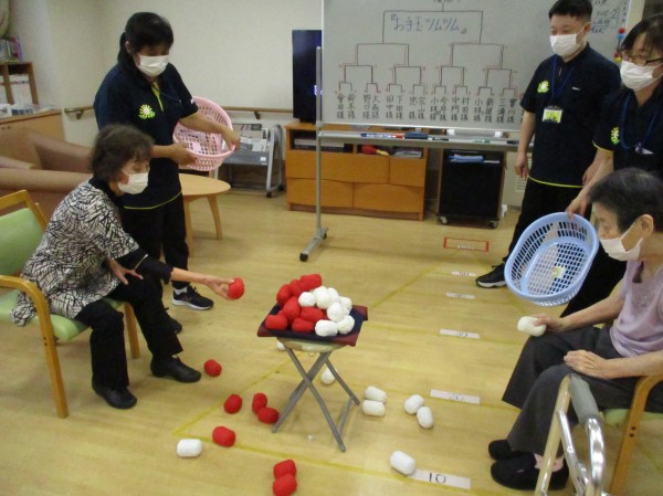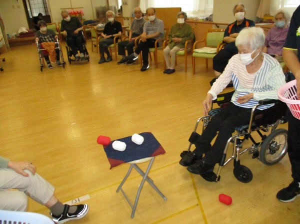 こんにちは!今日の運動レクレーションは『お手玉ツムツム』です!