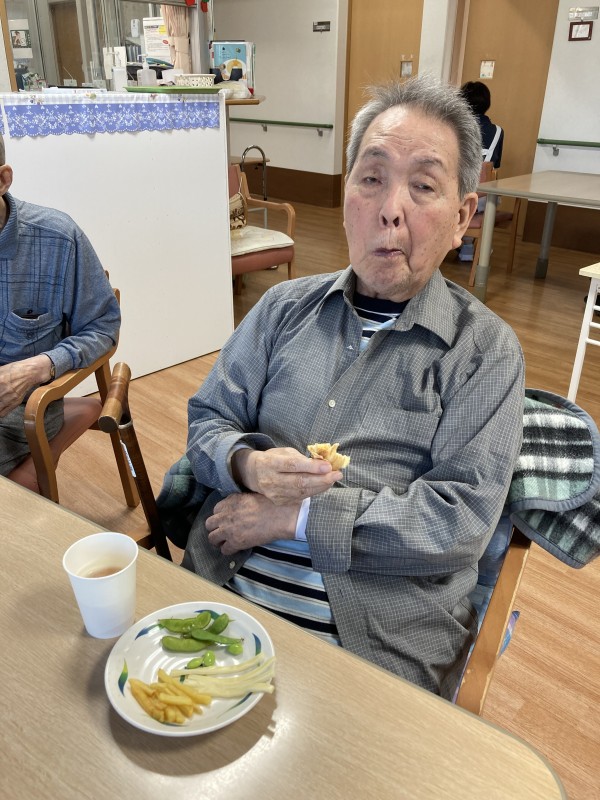 おつまみはチータラ、枝豆、フライドポテト…