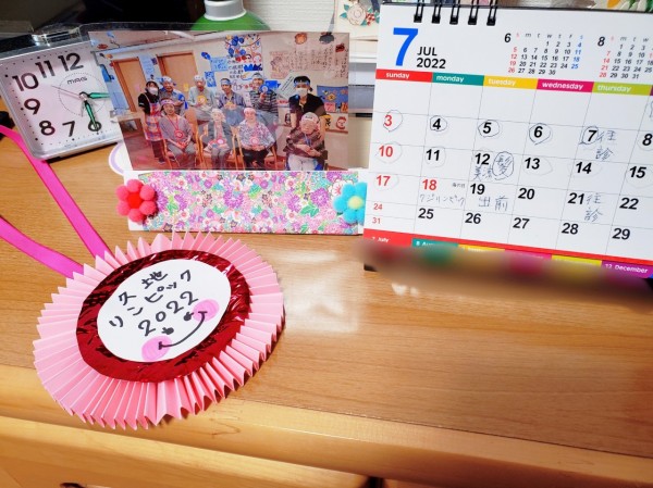 今日の日を思い出の一ページに刻んでいただけるように、私達からは、メダルと写真立て(両方ケアスタッフの手作りです。)