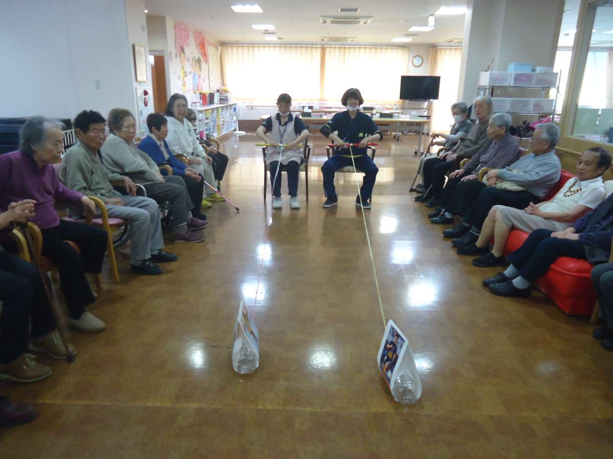棒に長い紐がくっついていて、その先にはペットボトルが