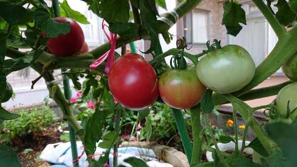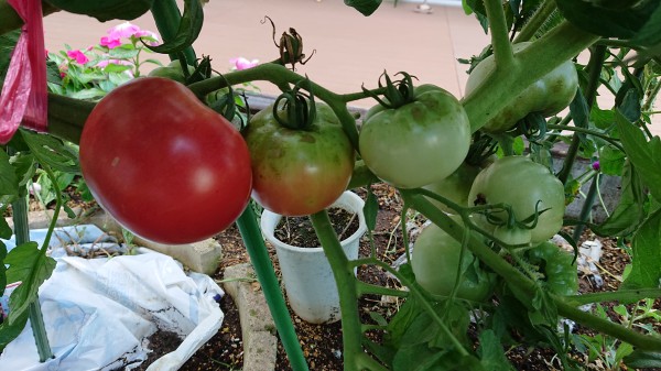 明日は2階のテラスに実っている「トマト」を収穫して、