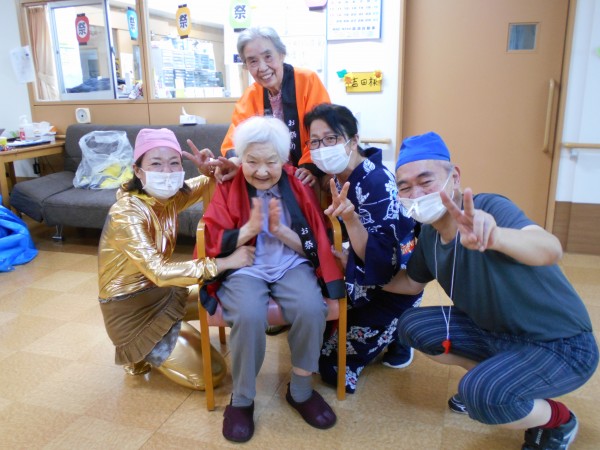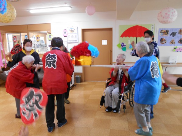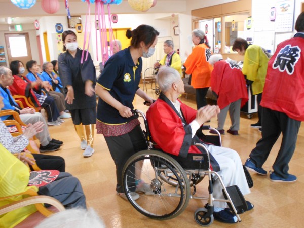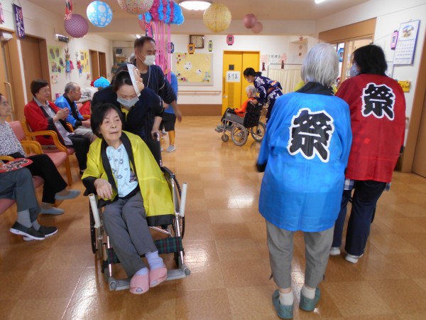 午前中は円になり皆様で盆踊りを踊ったり、お神輿を担いだり、スタッフによる余興を楽しんでいただきました( *´艸`)