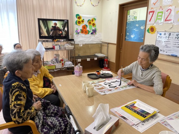 本日は1Fに2Fの入居者様をお招きして、お習字の先生をされていたというS様とともにお習字レクを行いました(^^)/
