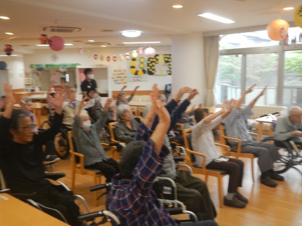 トレーナーの動きと曲に合わせて、元気に体を動かされ、リモートでの盆踊りを楽しまれていました。