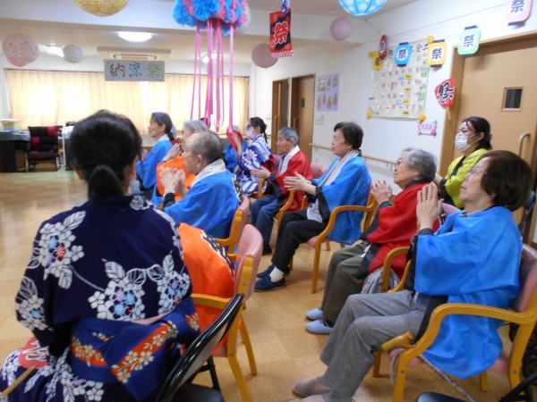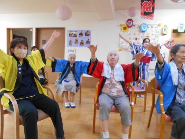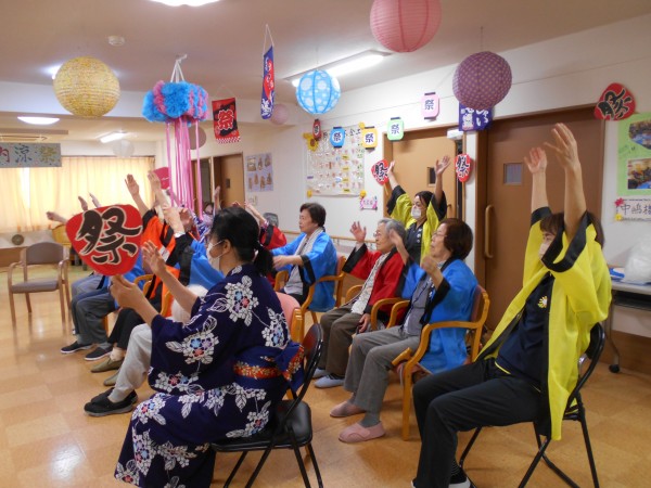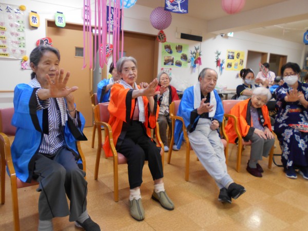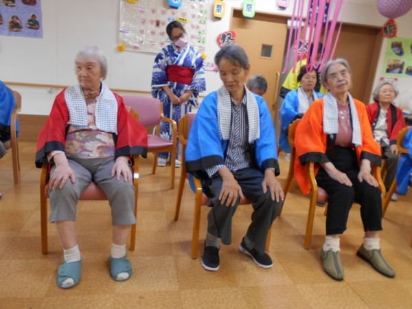 納涼祭の日は、午後から岡庭先生によるリモート運動教室「いきいき盆踊り」に参加しました!!