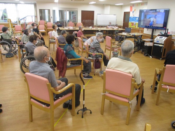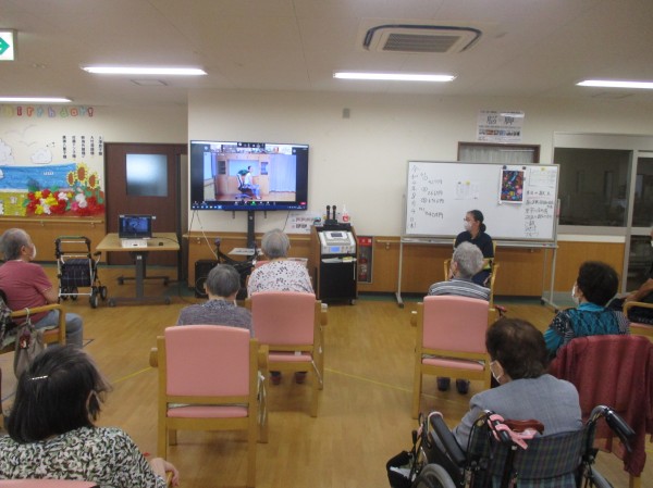 テレビ画面越しに、リモートで体操を行いました。