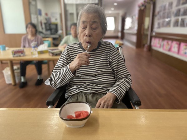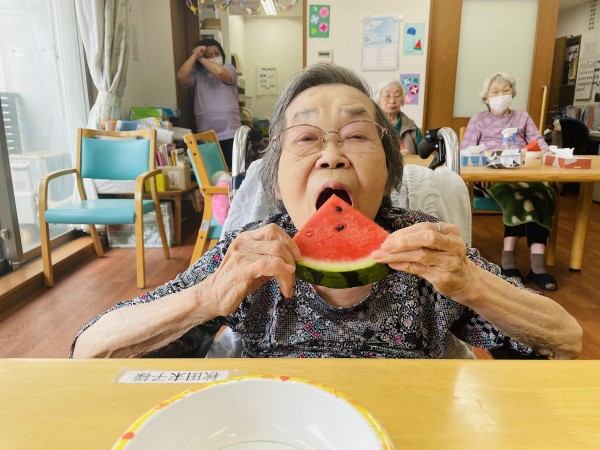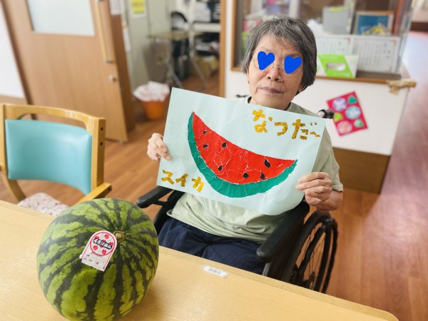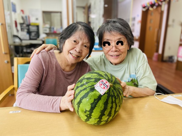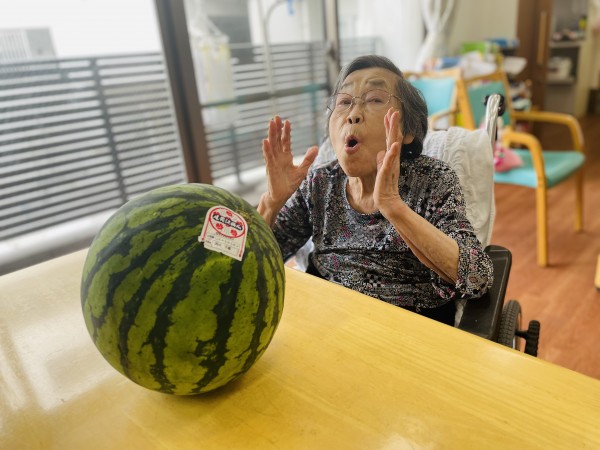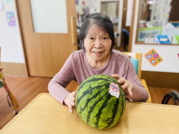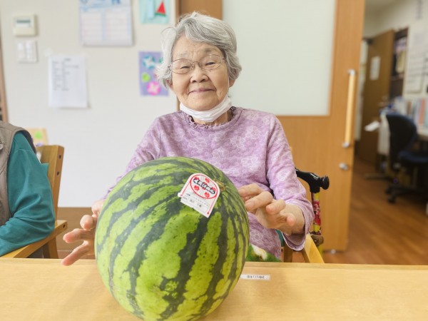 美味しいスイカが3階利用者様のご家族様から届きました。2階の利用者様も大喜びです。