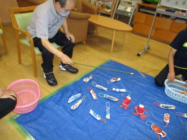 こんにちは!デイサービスセンター遊・西東京です。今日の運動レクレーションは『魚釣り大会』です。