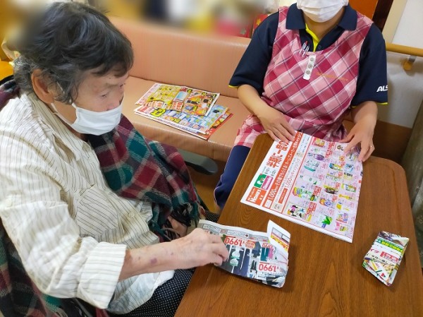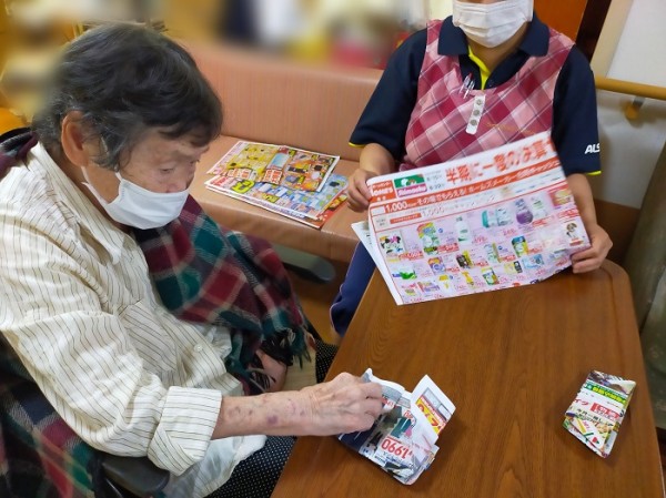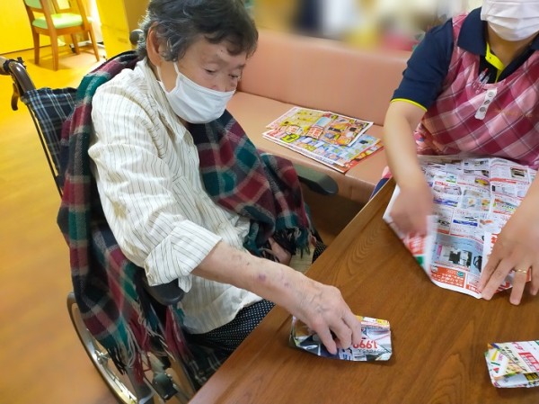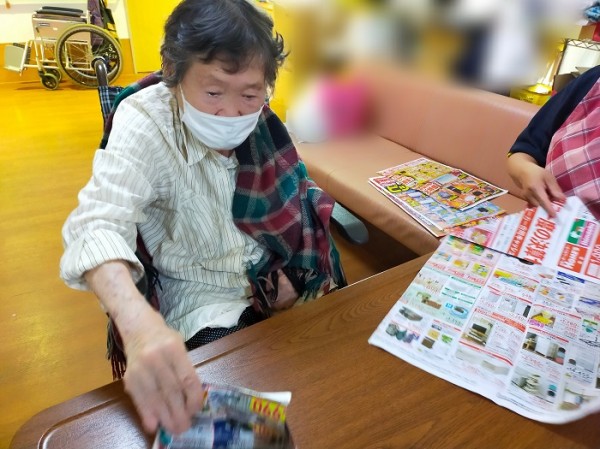 器用に新聞の広告を折り