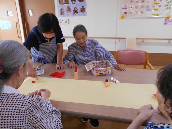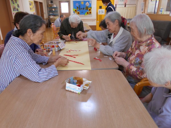 皆様、綺麗に赤色の折り紙を貼って頂きました(^^♪