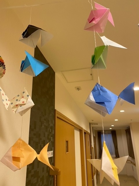 今日は折り紙で金魚の飾りをたくさん作りました!!