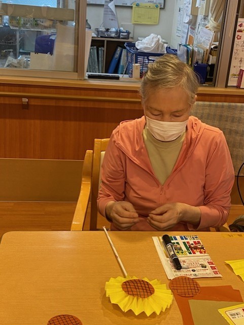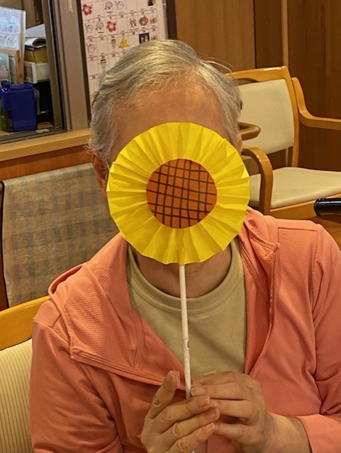 岩槻本町のフロアでは、レクリエーションにて、折り紙のひまわり作りが行われました( *´艸`)