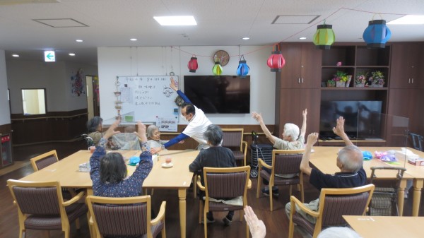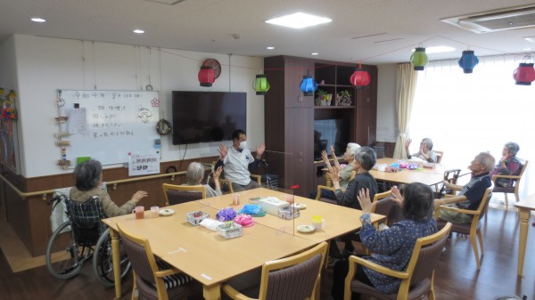 入居者様に人気の岡田先生の健康体操、今月はリモート+実地指導の2回です。