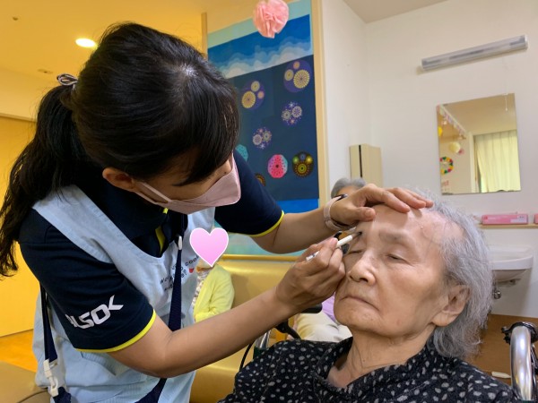安達リーダーも、ご入居者様のお化粧をお手伝いします。