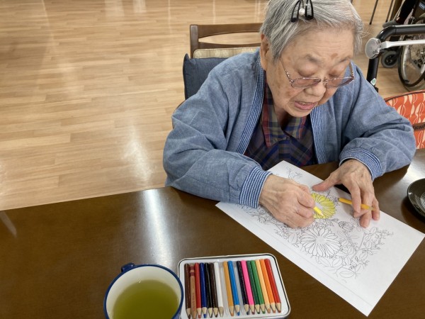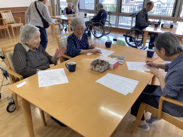 今日はみんなで集まって塗り絵をやりました!!