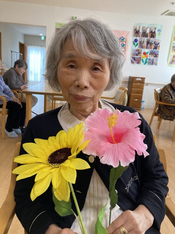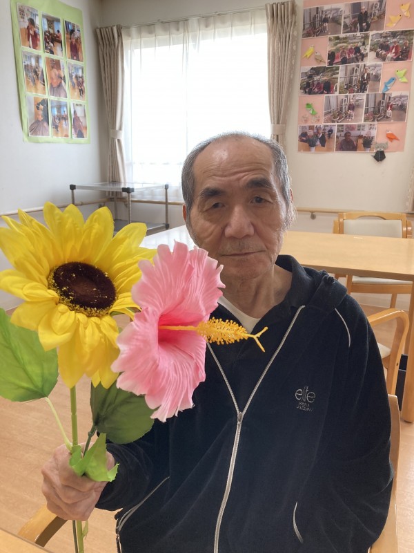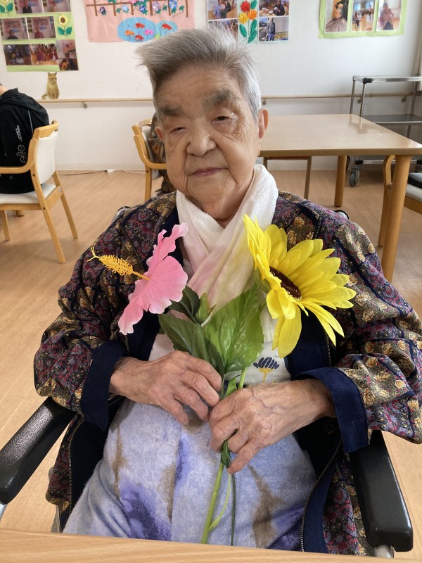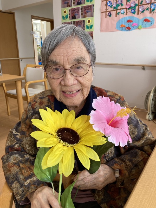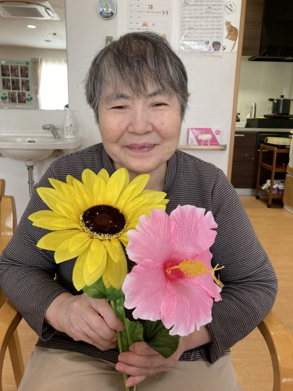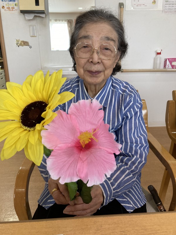 8月も残りわずかとなりましたが、夏らしい飾り花で記念撮影をしました。