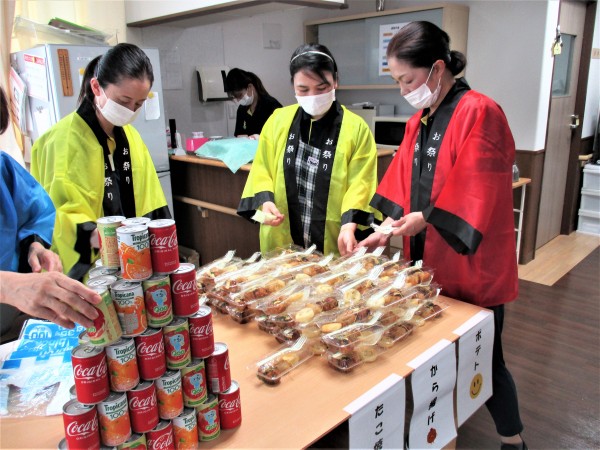 今日の午後は年に一度の納涼祭‼! 昼食も急いで食べて職員皆で準備です。