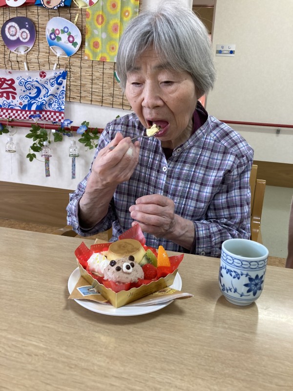 先日、月1回のお楽しみ、ケーキをご提供しました♪