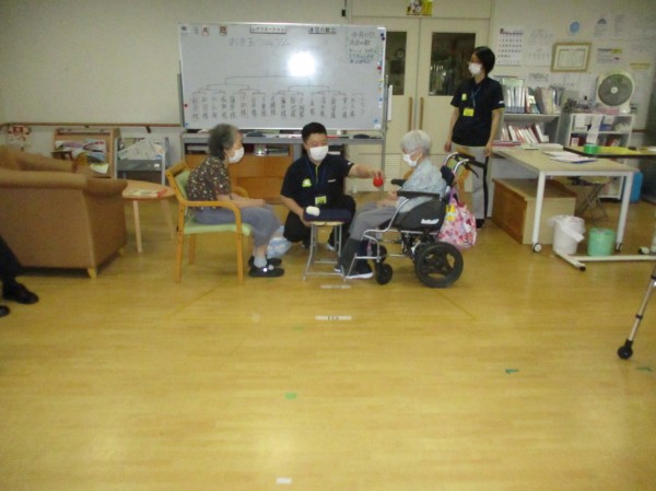 こんにちは!デイサービスセンター遊 西東京です。今日の運動レクレーションは『お手玉ツムツム』です。